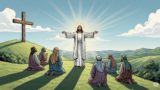 大勢の人々が朝日に向かって歩いている